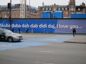 Copenhagen is doing its best to get into the spirit of Eurovision. At the very least, Eurovision is an excuse to use hoardings bearing the lyrics of the Danish song to hide the bits that aren’t finished yet.