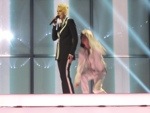 Basim from Denmark and his “Cliche Love Song” is just that, a poppy song with a rock’n roll feel and lots of words that don’t make sense in any language, that anyone can sing along to. It’s a lot of fun. His back up dancers are very energetic, if not quite in time.