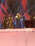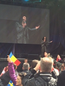 The show begins with last year’s winner, Emmelie de Forest singing her winning song, “Only Teardrops” with a children’s choir. Emmelie and the choir are on stage ready to go before the opening sequence is played, so she stands right in front of us that whole time, just soaking up the atmosphere. She waves, we all wave back. Although she must have sung that song so many times over the past 12 months, it’s clear that she still really enjoys it. The show has begun on a high, and it just gets better from there.