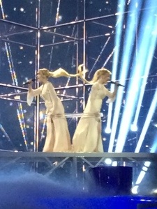 Yes, we all knew the words to this hand clapping, foot stomping song. The band’s enthusiasm was infectious, and it’s a fun song. Predictably, it didn’t get through, but everyone had a good time. I wasn’t able to get a photo of this band as an enthusiastic Latvia supporter was standing nearby.