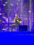 This song sounded amazing live. Hersi has a fantastic voice and the arrangement was much stronger live than on the recording. Another great dress, but I could be old-fashioned and suggest that she wears a slip under it.
